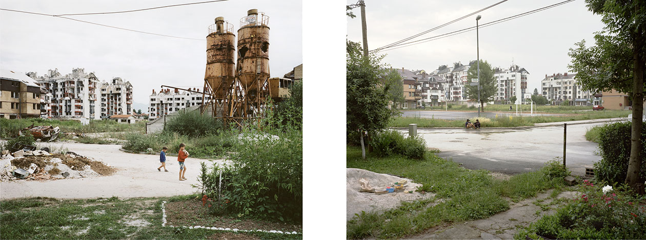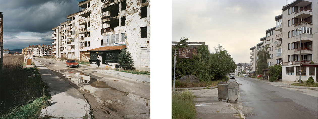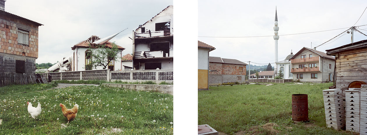 Er will noch einmal nach Bosnien, vielleicht im Winter. Er muss einfach dieses Bild einer Winterlandschaft wiederfinden: Wie Zwillinge stehen zwei Häuser nebeneinander. Das eine ist heil, die Wäsche hängt auf dem Balkon zum Trocknen. Das andere ist ausgebrannt, zwei Schornsteine ragen wie mahnende Finger in den weißlichen Himmel, ein Gartenzaun rahmt das Haus wie ein Sinnbild der Vergänglichkeit.