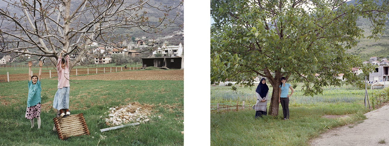 Auch Menschen von damals hat Bellwinkel wiedergefunden. Er hat nach Namen gefragt, Fotos von früher herumgezeigt. Auf einem Bild schaukeln zwei junge Mädchen an den kahlen Ästen eines Baumes. Zwölf Jahre später: Der Baum blüht, doch die Mädchen gehören nicht mehr zusammen: Die eine, eine Teenagerin mit Jeans und T-Shirt, blickt herausfordernd in die Kamera. Die andere, eine Muslima, steht verschleiert auf der anderen Seite des Stamms.