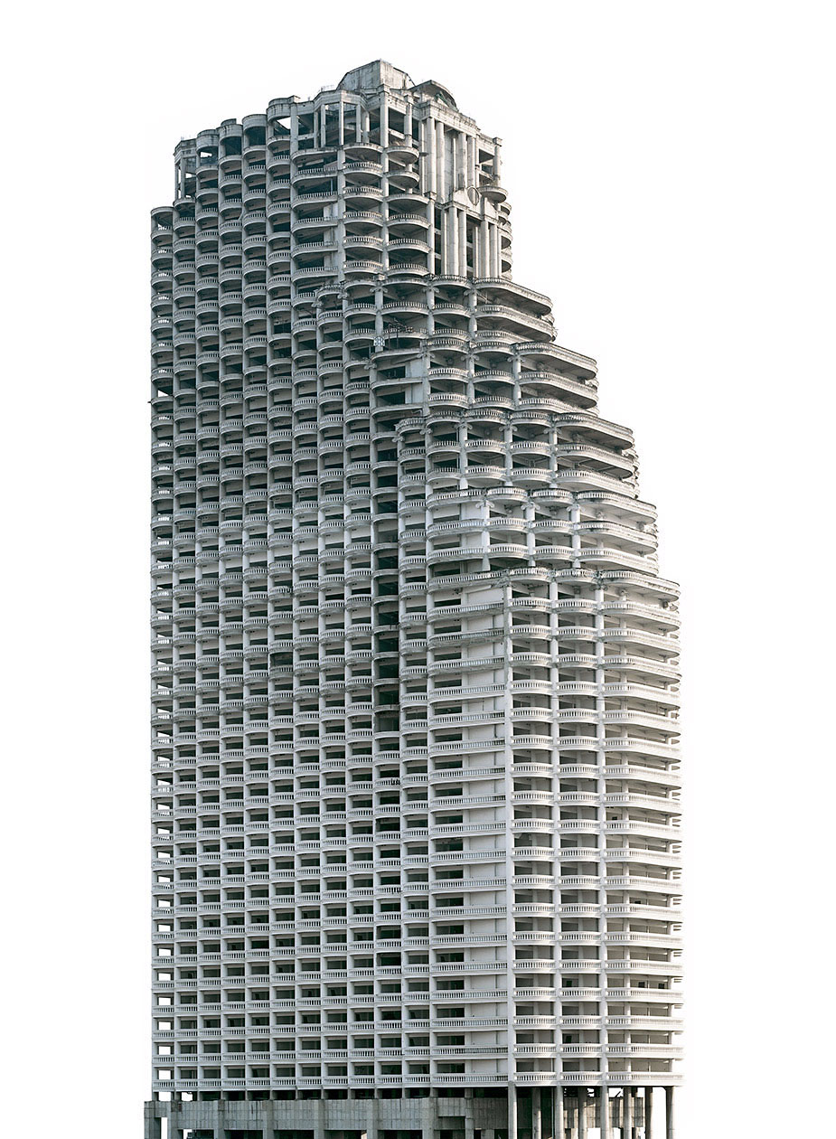 Die dokumentierten Gebäude wurden mit Hilfe digitaler Bildbearbeitung freigestellt. Die Hochhäuser werden dadurch der in der konventionellen Fotografie üblichen Beziehung von Objekt und Raum enthoben. Die bewusste Reduzierung entzieht den Bauwerken ihr erklärendes Umfeld. Diese Vorgehensweise führt zu Irritation, gleichzeitig aber auch zu einer stärkeren Konzentration auf das Skulpturale. Die herausgestellten „Babeltürme“ werden zu Sinnbildern des Größenwahns und in letzter Konsequenz zu einem Symbol des Scheiterns.