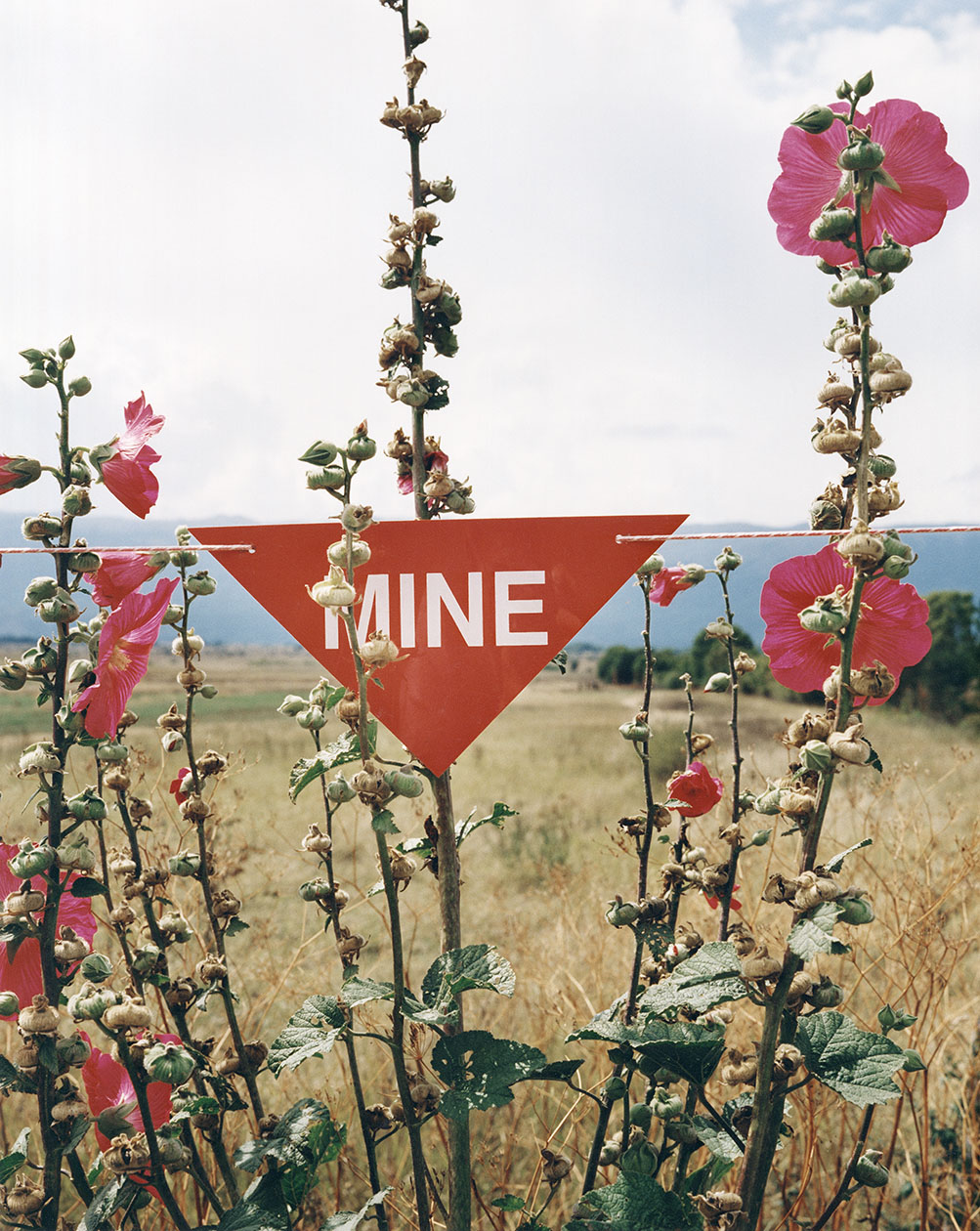 Sophie Ristelhuber showed us the Gulf War through a scarred and pitted land. In Bellwinkel’s work, war seems to have spilled across the landscape like guts of a corpse: intestines have become flowers, and we behold the idyllic beauty of the landscape in which an open pit has been dug. Debris remains and filth rise to the surface of the reality of this geography like images in a photographic emulsion.