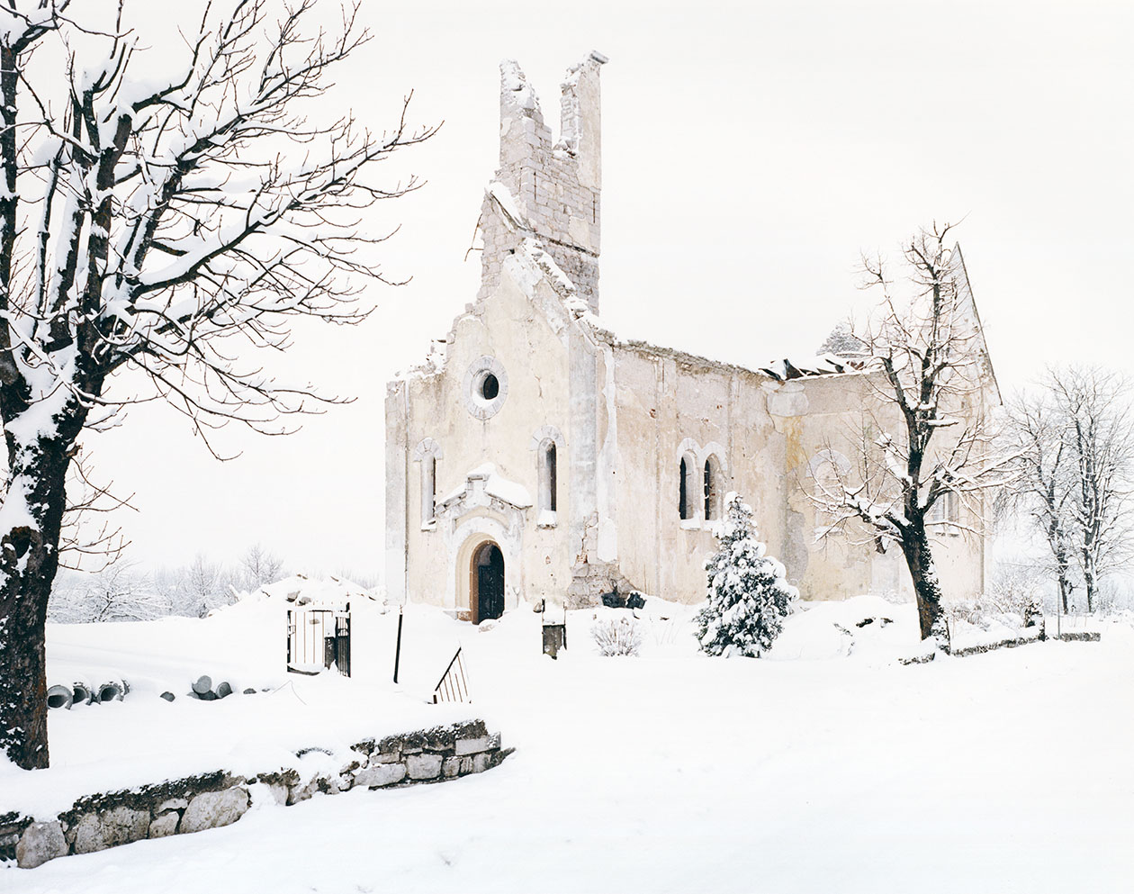 Wolfgang Bellwinkel works somewhere between that which is hidden and that which we hide, between that which is unseen and that which we do not want to see anymore. As in Paul Graham’s pieces on the clash in Ireland, all we see in the Bosnian conflict in Bellwinkel’s work is what it has written on the landscape, the marks left by the consequences of war and a difficult transition to a civil society. But these traces are so insistent and ineradicable that they shift this work out of the realm of landscape photos and into a domain of emblematic images whose character is universal or charged by our collective imagination.